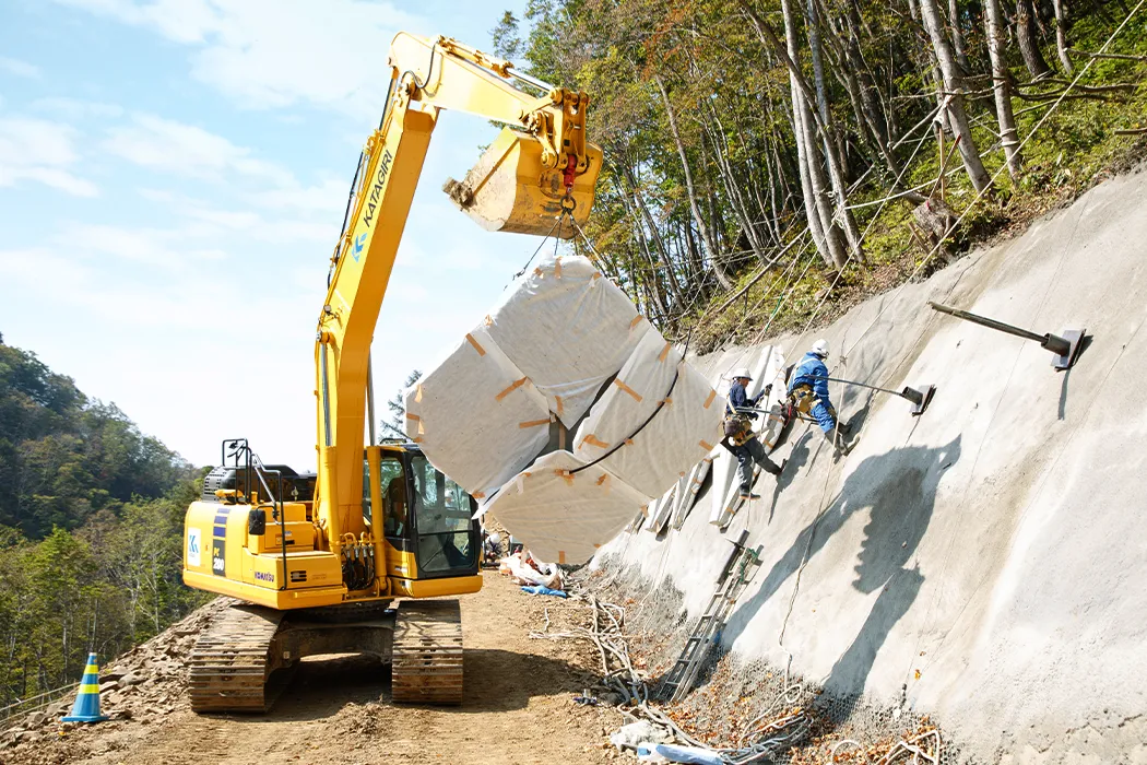 法面工事で特に重要なのが、私たちのような「プロの目線」。多くの経験を積んできたプロの技術と知識で、地形や立地を正確に読み取り、適切な補強を行なうことで、人々の安全な暮らしを支えています。